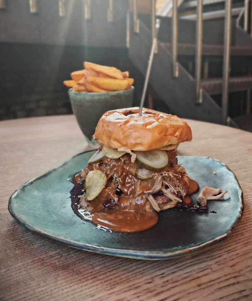 I anledning af Mortens Aften har vi lavet en menu bestående af en lækker ande-burger med vores confiteret and serveret med fries og afsluttet med en dessert